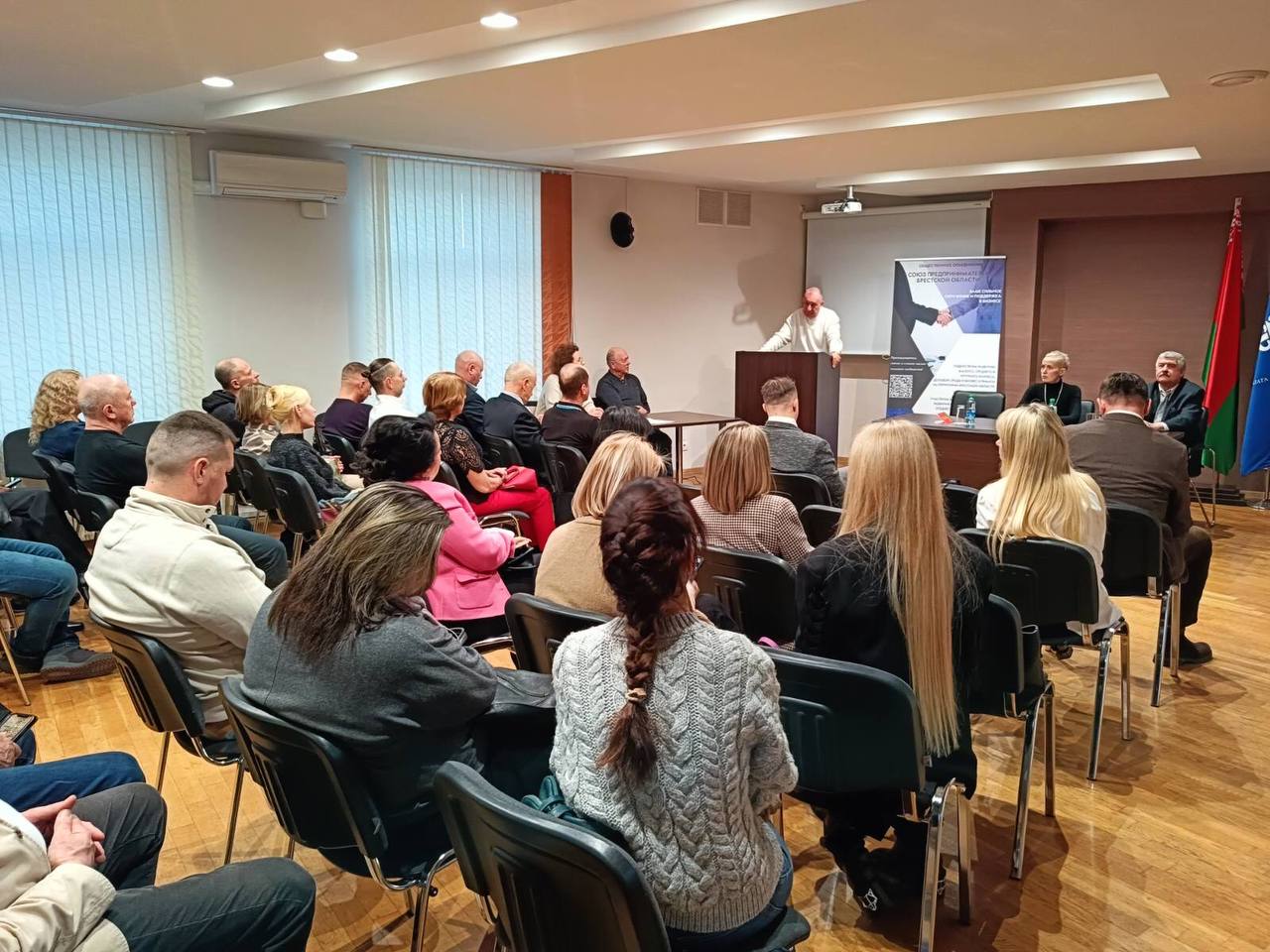 20 февраля 2026 года в конференц-зале БелТПП прошло Общее собрание ОО «Союз предпринимателей Брестской области», на котором были заслушаны и приняты решения по очётам председателя Совета Виталия Лисецкого и председателя Ревизионной комиссии Екатерины Филиповец о деятельности Объединения за 2025 год.